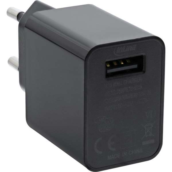 Naar omschrijving van InLine USB Power Adapter Single, 100-240V to 5V/2.5A, black.