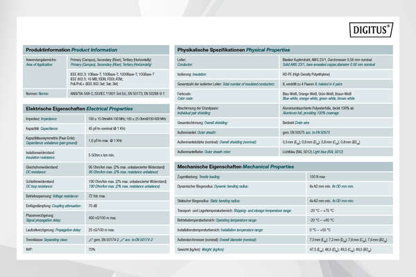 Naar omschrijving van DIGITUS CAT 6A U-FTP gevlochten paar installatiekabel.