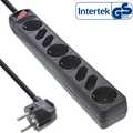 InLine Stekkerdoos, zwart, 4 plus 4 v Schakelaar, 1,5m, met Kinderbeveiliging